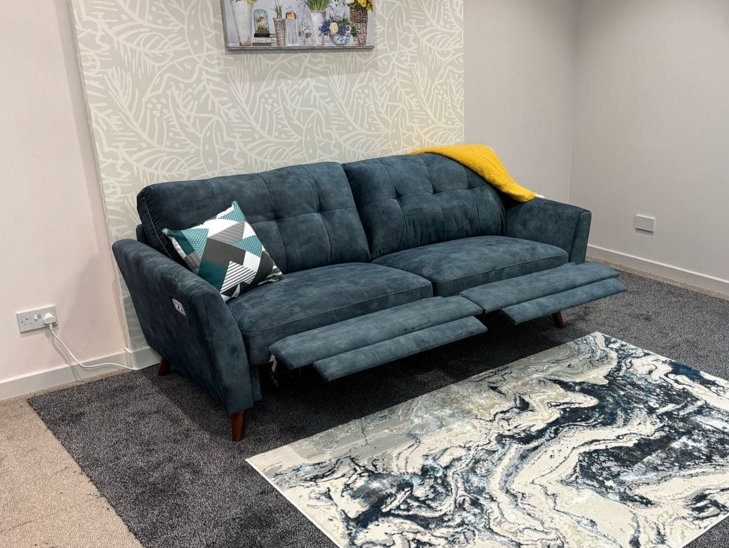 DFS Electric Recliner Ocean / Blue Plush Velvet Fabric 3 Seater, 2 Seater & Armchair Sofa Set Range