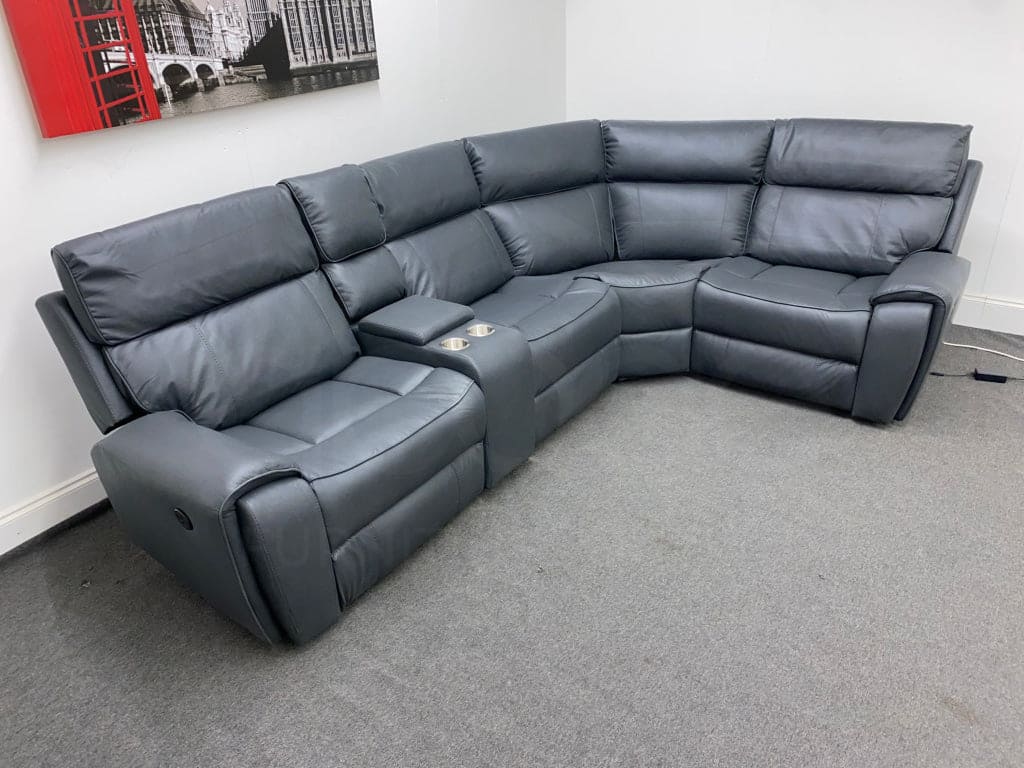 Electric Recliner Grey Fabric RHF Corner Sofa