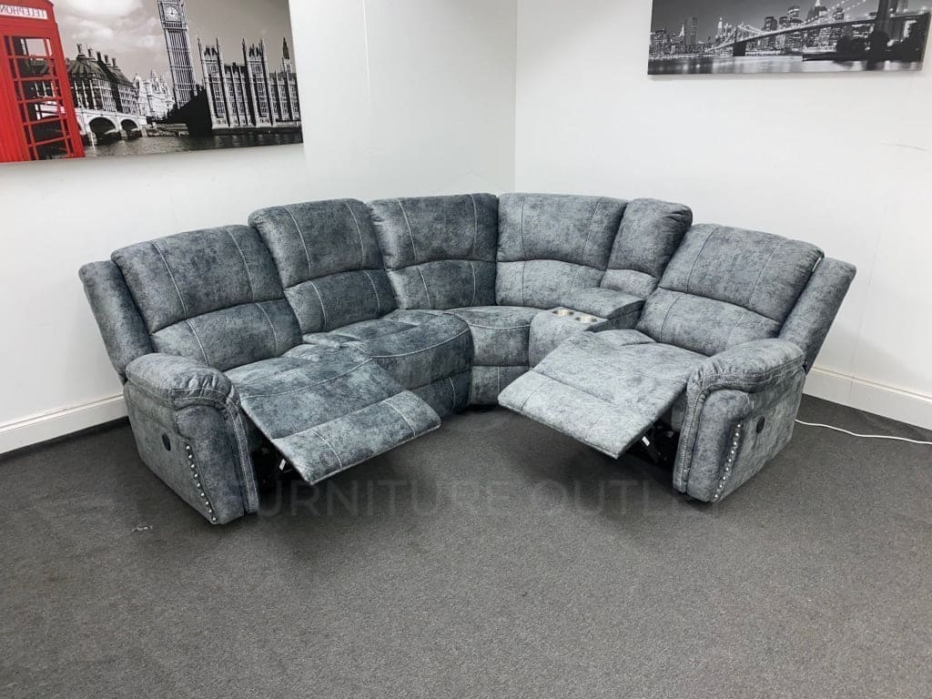 GALAXY "Finsbury Express" Grey Plush Velvet Electric Reclining Left & Right Hand Facing Modular Corner Sofa | USB Ports | Drinks Console