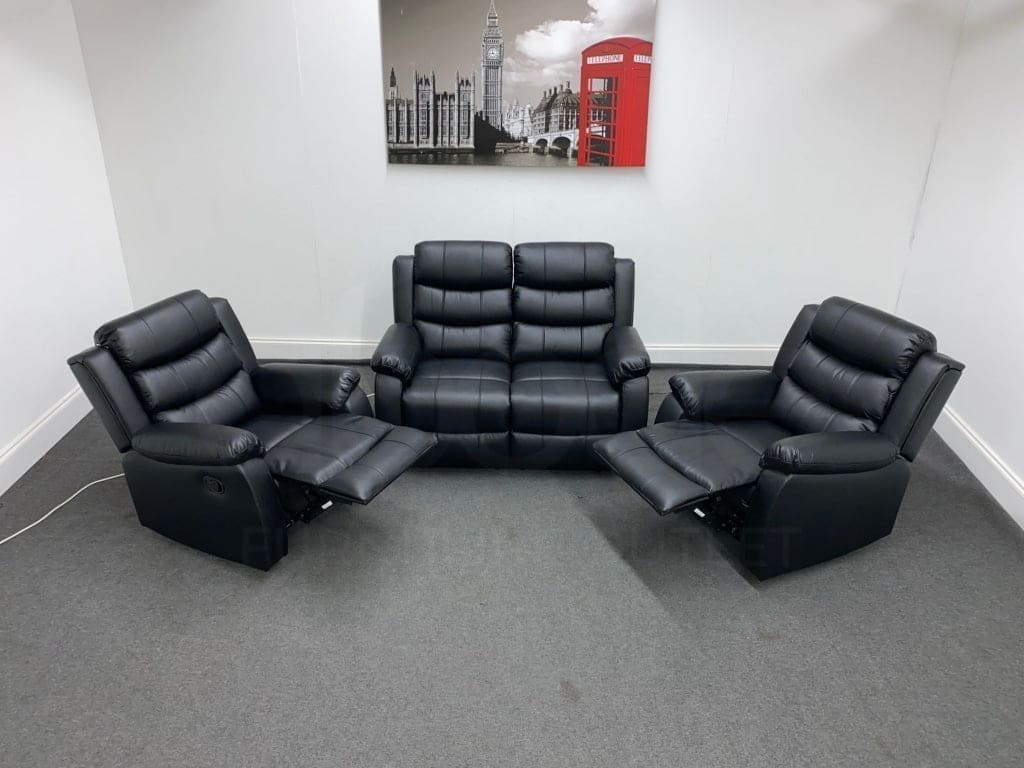 Lando Black Leather Reclining 2 Seater Sofa + 2 Armchairs Sofa & Armchair Set