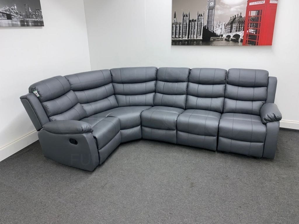 Lando Manual Recliner Grey Leather Corner Sofa - Reversible