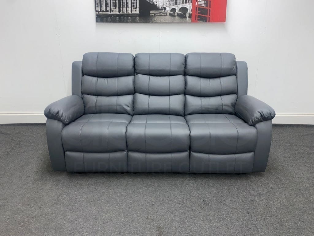 "Lando" Grey Leather 3 Seater Reclining Sofa Suite | High Backrest | Drinks Tray Table—