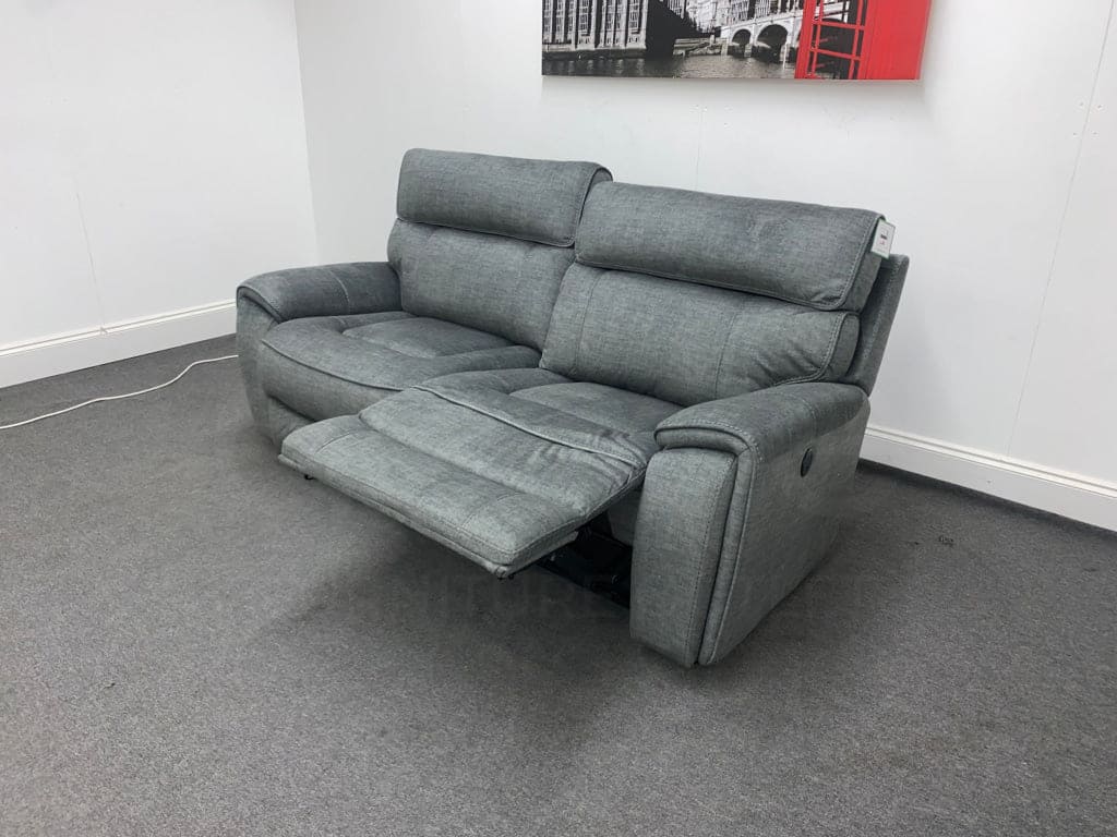 Portebello Electric Recliner Grey Fabric 3 Seater Sofa