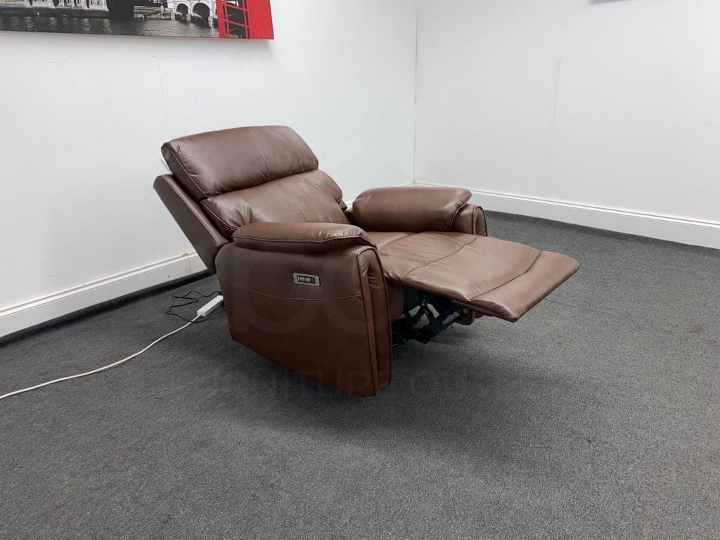 Supreme Electric Power Recliner Brown Leather 1 Seater Sofa / Armchair