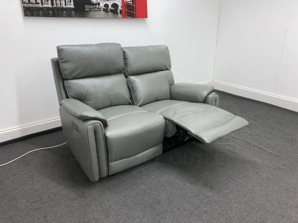 LIMITED TIME OFFER - Supreme Electric Power Recliner Grey Leather 2 Seater Sofa + USB Ports