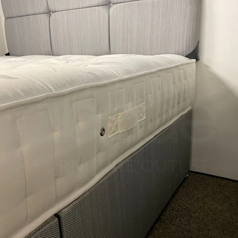 Included in this package is a 2 draw divan bed base in Grey fabric, a headboard in Grey fabric & the Mattress. The Complete Set.